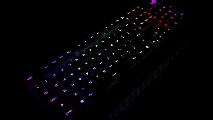 "ASUS ROG STRIX SCOPE RX 제품의 다양한 RGB 효과 입니다."