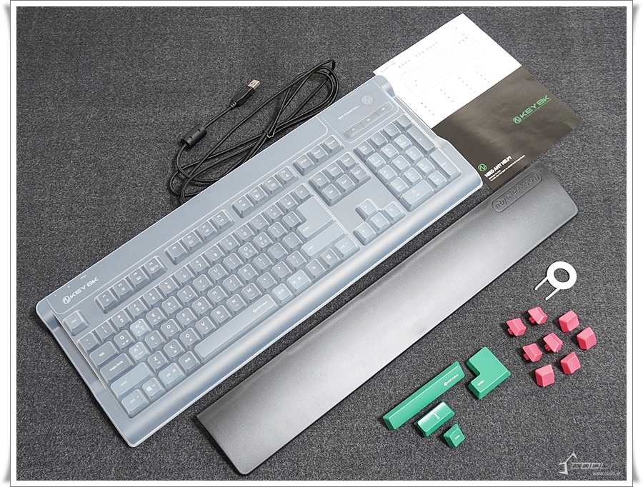 포인트 키캡, 키캡 리무버, 메뉴얼을 기본 구성품으로 제공하고 있습니다.