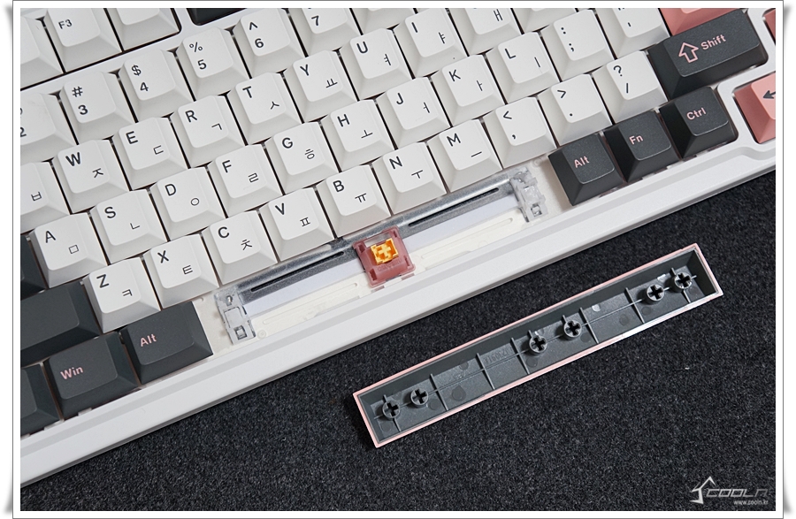 가스켓 구조 설계 및 저소음 피치축을 채택해 푹신푹신한 타건감과
